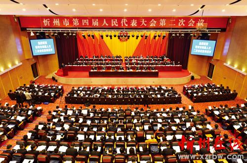 上午9時(shí),賈雪峰宣布:忻州市第四屆人民代表大會(huì)第二次會(huì)議開幕!會(huì)場(chǎng)全體起立,奏國歌。
