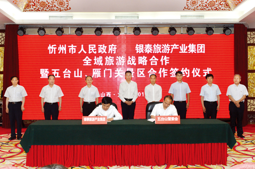 簽約儀式上,市長鄭連生和銀泰旅游產(chǎn)業(yè)集團總裁倪海濤分別代表雙方簽訂全域旅游戰(zhàn)略合作協(xié)議。五臺山管委會與銀泰旅游產(chǎn)業(yè)集團簽訂五臺山景區(qū)戰(zhàn)略合作協(xié)議;代縣縣政府與銀泰旅游產(chǎn)業(yè)集團簽訂雁門關(guān)景區(qū)戰(zhàn)略合作協(xié)議。