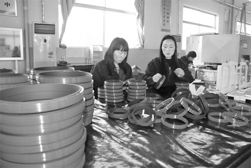 圖為1月21日,原平市泰寶密封有限公司的工人們正在生產(chǎn)加工密封件。該企業(yè)擁有國際先進(jìn)水平的奧地利無模密封件生產(chǎn)線,年生產(chǎn)能力達(dá)1200萬件。產(chǎn)品行銷東南亞各國和全國二十多個(gè)省市,廣泛應(yīng)用于煤炭、石油、冶金、機(jī)械、化工、電力、交通運(yùn)輸?shù)刃袠I(yè)。(褚震 攝)