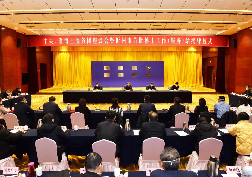 1月10日,中央、省博士服務(wù)團座談會暨忻州市首批博士工作(服務(wù))站揭牌儀式舉行。市委書記朱曉東出席并講話。市委常委、組織部部長張敏主持,市領(lǐng)導(dǎo)崔崢嶺、王建峰出席。