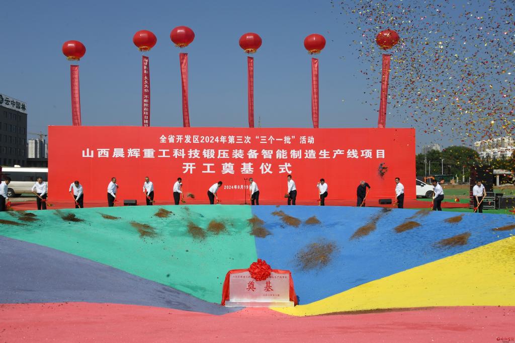活動(dòng)期間,與會(huì)人員共同為“開工一批”重點(diǎn)項(xiàng)目——山西晨輝重工科技鍛壓裝備智能制造生產(chǎn)線項(xiàng)目培土奠基,現(xiàn)場(chǎng)觀摩了“投產(chǎn)一批”重點(diǎn)項(xiàng)目——一道新能源(忻州)有限公司14GW光伏電池生產(chǎn)基地項(xiàng)目。(張曄)