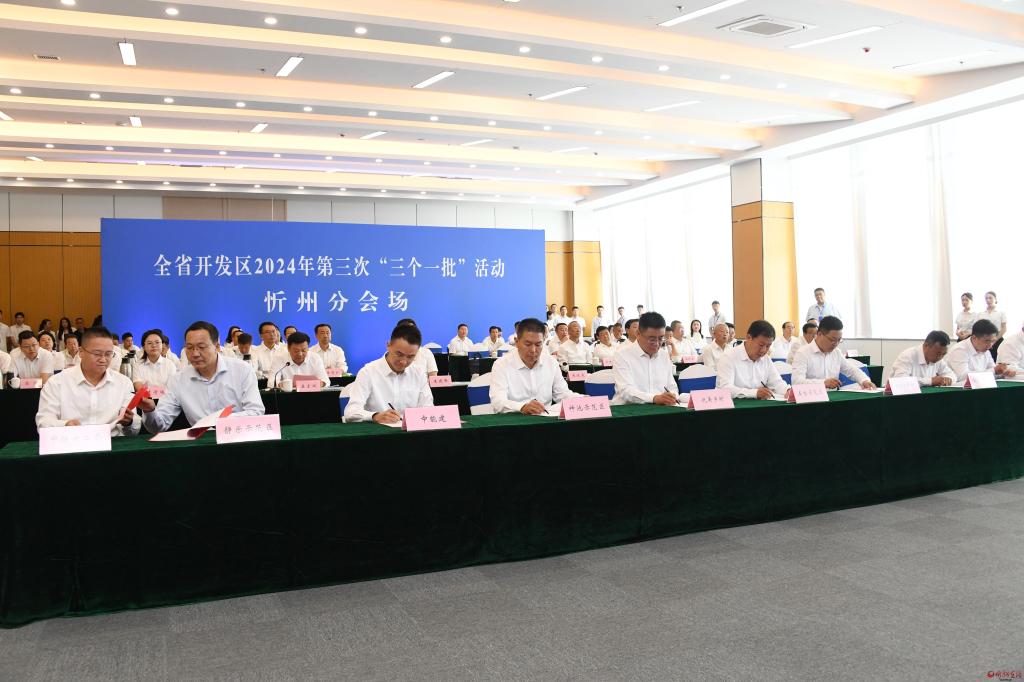 與省主會(huì)場(chǎng)同步,孟宏斌主持了忻州市“簽約一批”重點(diǎn)項(xiàng)目集中簽約儀式。忻州經(jīng)濟(jì)開發(fā)區(qū)與江蘇創(chuàng)曦新材料科技發(fā)展有限公司新材料光伏高端智能制造基地項(xiàng)目、原平經(jīng)濟(jì)技術(shù)開發(fā)區(qū)與原平富喬新能源有限公司生物質(zhì)熱電聯(lián)產(chǎn)項(xiàng)目、繁峙經(jīng)濟(jì)技術(shù)開發(fā)區(qū)與中城大有產(chǎn)業(yè)集團(tuán)有限公司共享儲(chǔ)能電站一期項(xiàng)目、定襄經(jīng)濟(jì)技術(shù)開發(fā)區(qū)與山西天寶集團(tuán)有限公司高性能耐腐蝕鍛件生產(chǎn)線建設(shè)項(xiàng)目、岢嵐經(jīng)濟(jì)技術(shù)開發(fā)區(qū)與陜西晉業(yè)重鋼建筑工程有限公司智能裝備制造項(xiàng)目、靜樂現(xiàn)代農(nóng)業(yè)產(chǎn)業(yè)示范區(qū)與中鐵十二局集團(tuán)建筑安裝工程有限公司共享儲(chǔ)能電站項(xiàng)目、神池現(xiàn)代農(nóng)業(yè)產(chǎn)業(yè)示范區(qū)與中國能源建設(shè)集團(tuán)投資有限公司山西分公司70MW光伏發(fā)電項(xiàng)目、五臺(tái)現(xiàn)代農(nóng)業(yè)產(chǎn)業(yè)示范區(qū)與山西優(yōu)美鄉(xiāng)村開發(fā)有限公司臺(tái)蘑莊園建設(shè)項(xiàng)目、五寨現(xiàn)代農(nóng)業(yè)產(chǎn)業(yè)示范區(qū)與五寨縣益康農(nóng)產(chǎn)品開發(fā)有限公司農(nóng)產(chǎn)品精加工建設(shè)項(xiàng)目、偏關(guān)生態(tài)文化旅游示范區(qū)與山西紅門口旅游產(chǎn)業(yè)開發(fā)有限責(zé)任公司紅門口地下長城景區(qū)托管運(yùn)營合作項(xiàng)目10個(gè)代表項(xiàng)目,分兩個(gè)批次進(jìn)行了集中簽約。