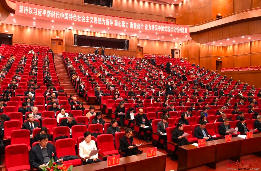 當(dāng)日上午,忻州大劇院大劇場(chǎng)布置簡樸,氣氛莊重?zé)崃摇V袊嗣裾螀f(xié)商會(huì)議會(huì)徽懸掛在主席臺(tái)正中,十面鮮艷的紅旗分列兩側(cè)。會(huì)場(chǎng)內(nèi)高高懸掛著大紅橫幅:堅(jiān)持以習(xí)近平新時(shí)代中國特色社會(huì)主義思想為指導(dǎo),凝心聚力,勇毅前行,奮力譜寫中國式現(xiàn)代化忻州篇章。