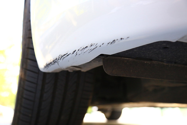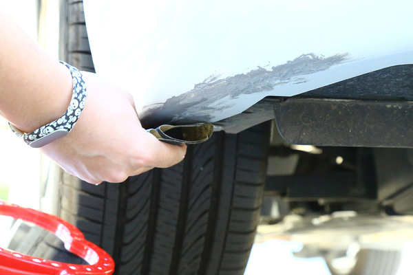 我們找來一輛前保險(xiǎn)杠底部被蹭得面目全非的可憐車,在選擇補(bǔ)漆工具時(shí)要根據(jù)劃痕的情況進(jìn)行合理選擇,不過就算是最嚴(yán)重的大面積傷及底漆的修補(bǔ)套裝,一般也不超過百元。
