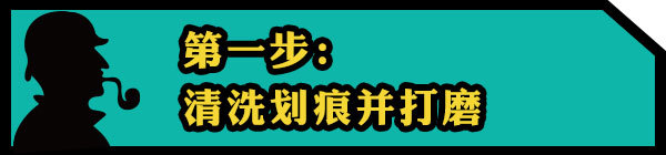 開始補(bǔ)漆作業(yè),先清洗劃痕位置以及周圍地方。先用800的砂紙進(jìn)行打磨,墊上一塊墊木沾一些水,可以更好掌握砂紙打磨時(shí)的力度。將劃痕處的漆面以及傷痕打磨平整并再次清洗擦干。