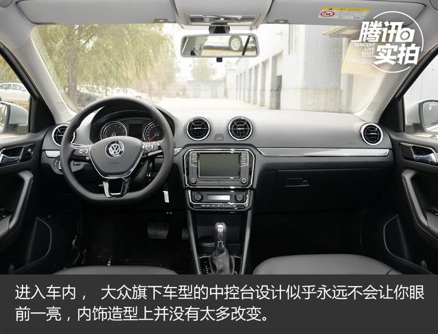 進(jìn)入車內(nèi), 大眾旗下車型的中控臺(tái)設(shè)計(jì)似乎永遠(yuǎn)不會(huì)讓你眼前一亮,內(nèi)飾造型上并沒(méi)有太多改變。全新三輻平底方向盤是最大改變,盤輻大小正好,握感也很不錯(cuò),鋼琴烤漆的飾條更是點(diǎn)睛之筆,兩側(cè)多功能按鍵可以控制多媒體和藍(lán)牙電話等功能。儀表盤的底紋有所改變,黑底白字清晰易讀,中央是單色行車電腦顯示屏。車內(nèi)空調(diào)出風(fēng)口造型有所調(diào)整,內(nèi)部構(gòu)造更加復(fù)雜。