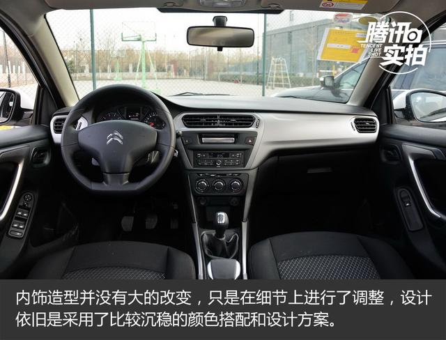 內(nèi)飾造型并沒(méi)有大的改變,只是在細(xì)節(jié)上進(jìn)行了調(diào)整,設(shè)計(jì)依舊是采用了比較沉穩(wěn)的顏色搭配和設(shè)計(jì)方案。中控臺(tái)的材質(zhì)還是硬塑料,做工和顏色搭配還算不錯(cuò),畢竟它是一臺(tái)雪鐵龍的入門級(jí)車型。三幅平底方向盤造型看著令人很有好感,而且手感也不錯(cuò),支持上下兩向調(diào)節(jié),并不能前后拉伸。指針式儀表盤黑底白字清晰易讀,表盤上新增了雪鐵龍法文LOGO和三叉星式圖案,上方顯示屏的顏色也從紅色變?yōu)榱税咨6嗝襟w系統(tǒng)功能比較單一,可以提供收音機(jī)和通過(guò)底部USB接駁外部音源。