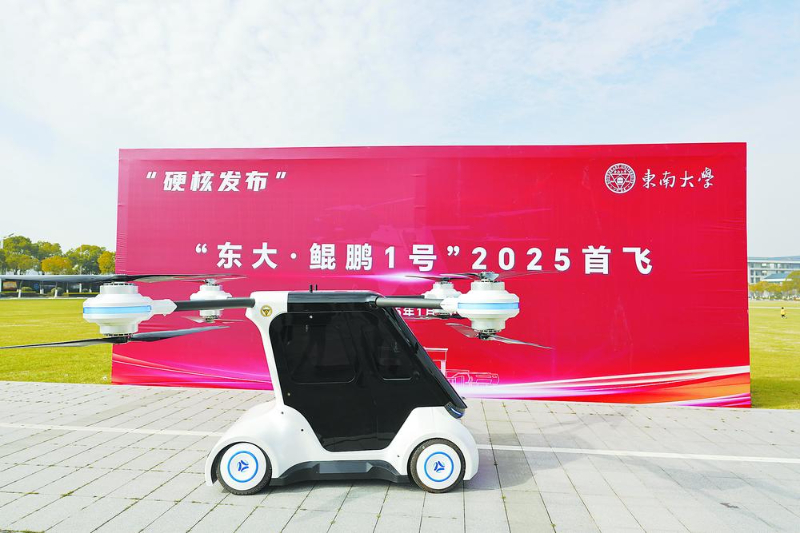 “這款陸空一體的飛行汽車以汽車為主要載體,而非當(dāng)下以無人機(jī)為主技術(shù)路線。它可以在地面行駛與飛行移動間隨意切換?!痹擁?xiàng)目負(fù)責(zé)人、東南大學(xué)機(jī)械工程學(xué)院教授殷國棟介紹,傳統(tǒng)電動垂直起降飛行器(eVTOL)不具備地面移動能力;而“東大·鯤鵬1號”為陸空一體構(gòu)型,兼具地面運(yùn)載裝備的快速移動與空中運(yùn)載裝備的靈活移動能力。同時,“東大·鯤鵬1號”集多項(xiàng)創(chuàng)新技術(shù)于一身,突破了陸空一體化車身結(jié)構(gòu)拓?fù)鋬?yōu)化、動力系統(tǒng)全域冗余機(jī)制、多模態(tài)交互數(shù)字化座艙、跨域共用多維數(shù)據(jù)融合、陸空分布式電驅(qū)動系統(tǒng)以及雙阿克曼協(xié)同轉(zhuǎn)向等關(guān)鍵技術(shù)。