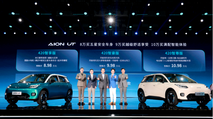 央廣網(wǎng)北京1月15日消息(記者 姜鵬)1月6日,埃安UT鸚鵡龍正式開啟預售,新車共推出420智享版、420智豪版、420智尊版3個版本,預售價8.98萬元-10.98萬元。
