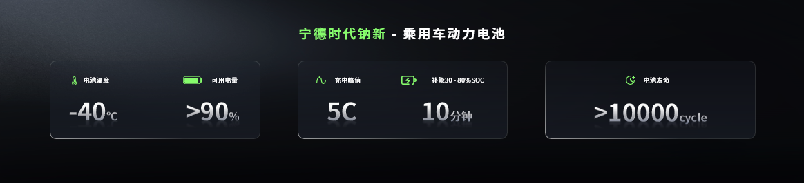 鈉新乘用車動力電池的能量密度達175Wh/kg,為當前全球鈉電最高,比肩磷酸鐵鋰電池;支持峰值5C的充電速率和500公里續(xù)航,實現(xiàn)超1萬個循環(huán)的壽命,同時大幅降低維護成本。在安全性上,鈉新電池從材料本征層面消除電池熱失控中的助燃因素,實現(xiàn)電池安全從"被動防御"到"本質(zhì)安全"的跨越式突破。