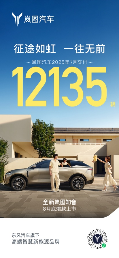 | MPV+SUV雙品類(lèi)熱銷(xiāo)!嵐圖汽車(chē)7月交付12135輛 全新知音8月底上市 |