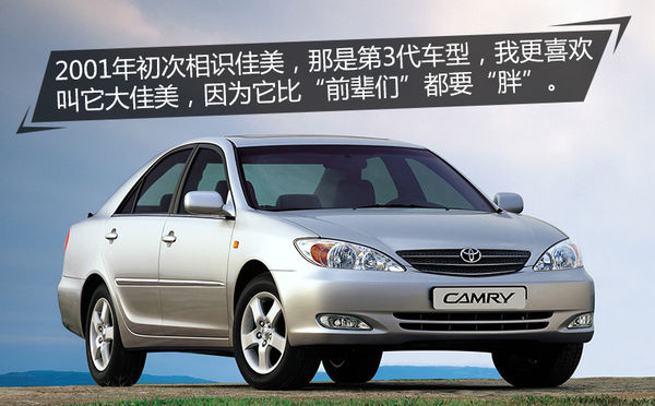說起來,筆者與凱美瑞應(yīng)該算是“老熟人”了,最初的緣分要回憶到上初中的時候,那時候凱美瑞還是進口車,那時候他被人們稱作“佳美”。2001那年筆者在念初三(額~~一不小心暴露了年齡),姑姑家買了一輛銀灰色的豐田佳美,那時候還不太懂車,只知道能坐上30多萬的車是一件非常值得吹牛逼的事情。