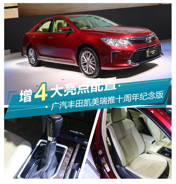 廣汽豐田凱美瑞自2006年登陸中國并實現(xiàn)國產(chǎn)以來,十年間這款車型在華累計銷量已突破150萬輛,并且是同級別車型中以最快速度完成這一目標(biāo)的。恰逢凱美瑞在華投產(chǎn)、銷售十周年之際,廣汽豐田在長春車展上發(fā)布凱美瑞十周年紀(jì)念版車型。相比現(xiàn)款凱美瑞,新車實現(xiàn)了4大配置升級,其中包括自動啟停、雙透鏡LED大燈在內(nèi)的多項細節(jié)提升,新車預(yù)計將在8月中旬到店上市。
