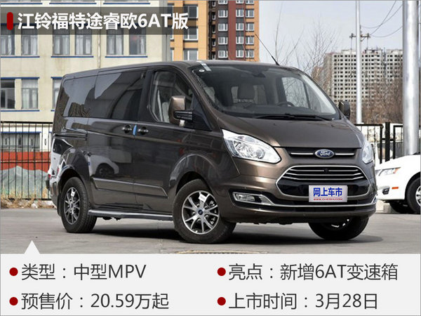 途睿歐是江鈴福特旗下一款MPV車型,目前全系均為手動擋車型,其自動檔車型將于3月28日上市。外觀方面,新車前臉使用了六邊形進氣格柵,側(cè)面配有雙五輻式輪轂,下部則搭載了金屬踏板。車內(nèi)配有四輻式多功能方向盤、7英寸中控液晶顯示屏以及自動恒溫空調(diào)系統(tǒng)等舒適實用配置。此外新車還配備了博世ESP系統(tǒng)、HSA坡道輔助系統(tǒng)以及倒車影像等科技安全配置。途睿歐采用了福特2.0T EcoBoost渦輪增壓發(fā)動機,最大功率為149kW,峰值扭矩達到了300Nm。