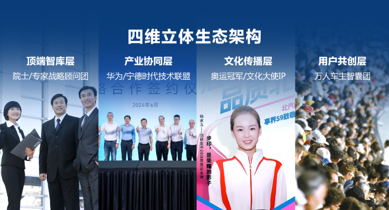 “品牌摯友計劃”是北汽集團“品牌三年躍升行動”的重要引擎,構建一個“四維立體生態(tài)”:頂端智庫層,邀請院士、專家、經濟學家組成戰(zhàn)略顧問團;產業(yè)協同層,與華為、寧德時代等合作伙伴共建技術品牌聯盟;文化傳播層,攜手奧運冠軍、文化名人打造"美好出行大使"IP;用戶共創(chuàng)層,建立萬人級車主智囊團。除了外部資源,品牌摯友計劃還將逐步拓展至20位內部管理者及300名KOE員工。