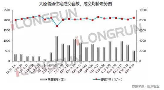 朗潤(rùn)解析:2016年5月第四周(5.23—5.29),本周成交面積,萬(wàn)柏林區(qū)排名第一,主力成交項(xiàng)目為國(guó)投贊城、萬(wàn)科金域華府、萬(wàn)科藍(lán)山;小店區(qū)排名跌落第二,均價(jià)在9,336元/㎡,主要因星河灣成交帶動(dòng)均價(jià)上漲;杏花嶺區(qū)和尖草坪區(qū)本周表現(xiàn)較差。