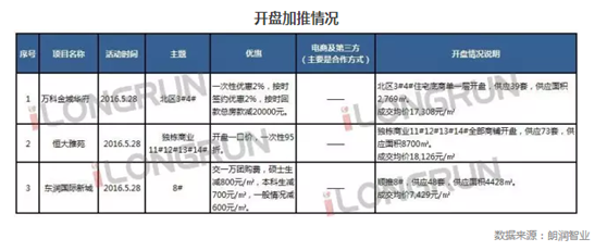 2016年5月第四周(5.23—5.29),本周有三個(gè)項(xiàng)目開盤、加推。