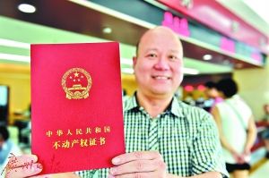 一市民領(lǐng)到不動(dòng)產(chǎn)權(quán)證書(shū)。 新華社發(fā)(呂斌攝)