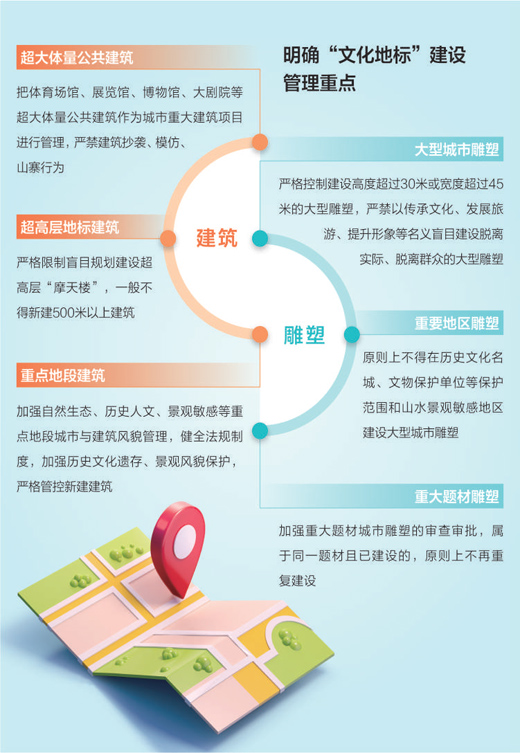 “文化地標(biāo)”是一座城市“精氣神”的集中體現(xiàn),富有歷史文化底蘊(yùn)的建筑、雕塑等,在營造公共環(huán)境、提升文化品位、塑造城市風(fēng)貌等方面發(fā)揮著重要作用。但有些地方建設(shè)的地標(biāo),忽視本地實(shí)際、割裂歷史文脈,不僅違背了城市發(fā)展規(guī)律,也破壞了生態(tài)環(huán)境和歷史文化風(fēng)貌。