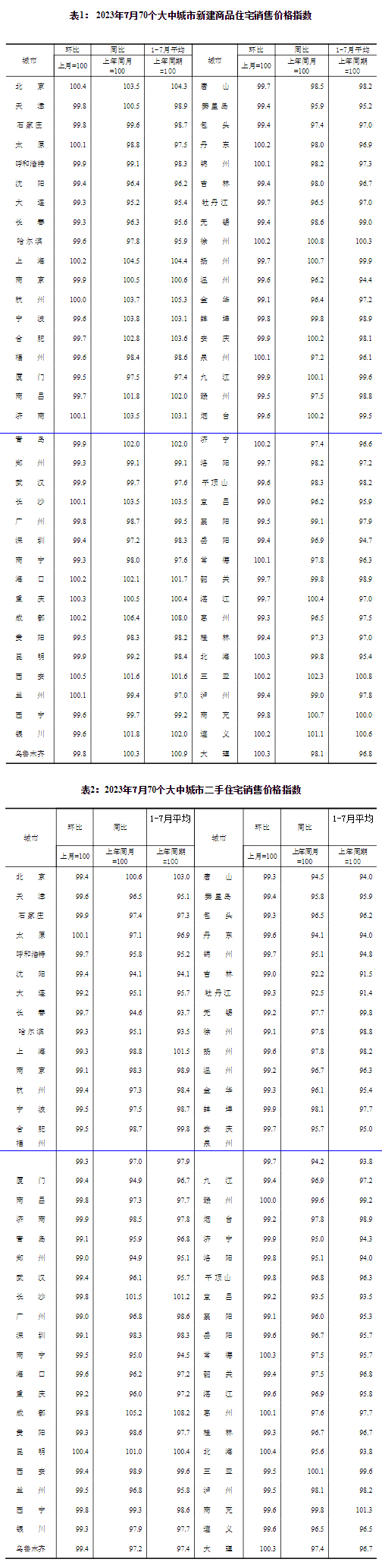 中新網(wǎng)8月16日電 國(guó)家統(tǒng)計(jì)局網(wǎng)站16日發(fā)布2023年7月份70個(gè)大中城市商品住宅銷售價(jià)格變動(dòng)情況,國(guó)家統(tǒng)計(jì)局城市司首席統(tǒng)計(jì)師繩國(guó)慶該統(tǒng)計(jì)數(shù)據(jù)進(jìn)行解讀。2023年7月份,70個(gè)大中城市商品住宅銷售價(jià)格上漲城市個(gè)數(shù)減少,各線城市商品住宅銷售價(jià)格環(huán)比持平或下降、同比有漲有降。
