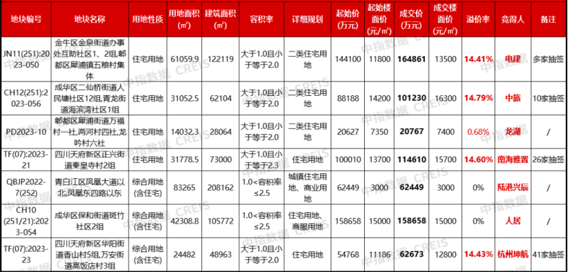 9月26日,成都推出新政,取消住宅清水限價、裝修限價及二手房指導(dǎo)價。本次土拍也是成都新政后的首次土拍,且是最后一次采用“限價競買+抽簽競得”的規(guī)則,未來將只保留“競地價”的方式。即取消近三年的“限房價、限地價”的雙限政策和近七年的土拍熔斷機(jī)制,回歸到以“價高者得”的模式。