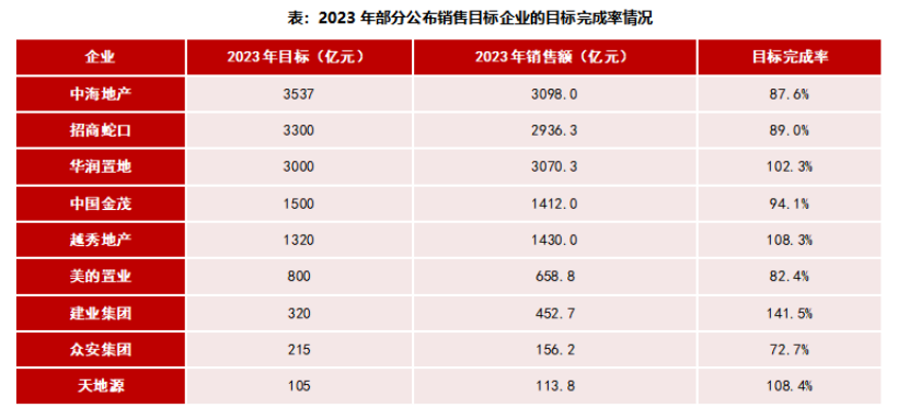 從銷售目標(biāo)完成率來(lái)看,2023年,9家房企目標(biāo)完成率均值為98.5%,其中華潤(rùn)、越秀地產(chǎn)、建業(yè)集團(tuán)、天地源完成全年目標(biāo)。