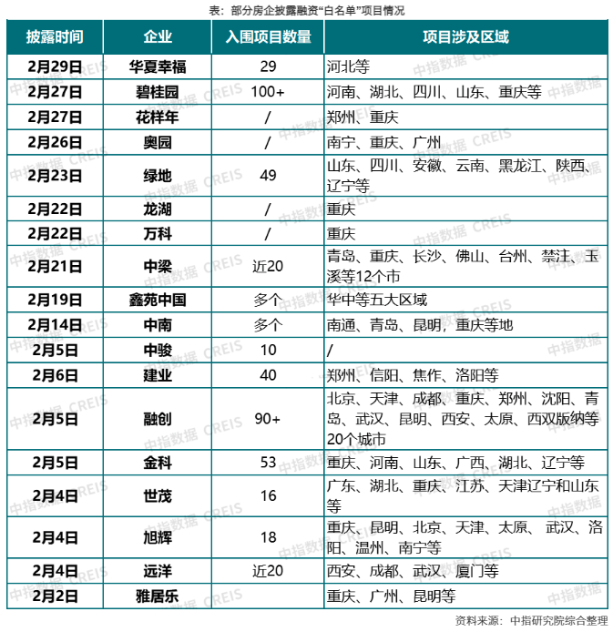 根據(jù)中指研究院監(jiān)測,城市房地產(chǎn)融資協(xié)調(diào)機制建立以來,鄭州、成都、重慶、昆明等城市上報項目數(shù)量均超200個,部分出險房企也有多個項目進入白名單,在“推送-反饋”工作閉環(huán)下,出險房企的項目獲得融資支持的機會也有望增加,有利于進一步穩(wěn)定市場預(yù)期。