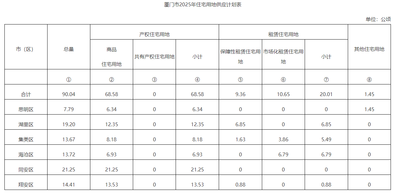 | 廈門:2025年住宅用地計(jì)劃供應(yīng)90公頃 |