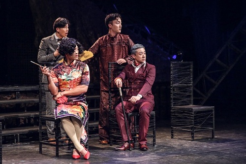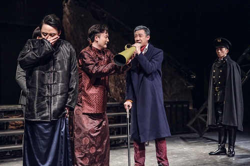 在荒誕悲喜劇《造王府》中,五位掌握金錢和話語權的達官貴人爾虞我詐,明爭暗斗。而作為全劇發(fā)展的一條副線,楊婉兒和張署長及馬副官的三角戀情也讓觀眾又恨又憐,都說戲子無情,可這無情之人卻因“有情”成為貪官手里的替罪羊。因孽緣因執(zhí)迷因一念之間,貪愛恨貪名利貪徒有虛表,是非可以顛倒,善惡難以分辨。最終,觀眾苦苦等待的真像也未能到來?!对焱醺纷屇阕呷牖奶评锏寞偪駚y世,又見證亂世中的愛恨孽長。