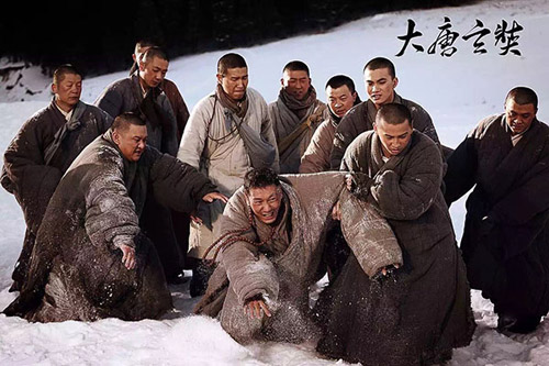1300多年前,玄奘法師用了19年完成了這段行走在信念之上的旅程:他遠(yuǎn)赴印度求法,而心中早已成佛?!洞筇菩省吩佻F(xiàn)了這一段傳奇之旅,玄奘西行中經(jīng)歷了各種磨難,甚至數(shù)度命懸一線:被當(dāng)成偷渡者,險(xiǎn)中西域邊陲的箭雨;徒弟石盤陀因被心魔驅(qū)動(dòng),竟對(duì)恩師匕首相對(duì)。廣袤無(wú)垠的沙漠中失去水源又迷失方向時(shí),差點(diǎn)命喪黃沙,這些都擋不住他鑒定的腳步。最終玄奘憑著內(nèi)心不變的信念,完成了這段不可能的旅程。桑馴華飾演的小和尚一直陪在黃曉明飾演的玄奘法師身邊,一切艱難險(xiǎn)阻都一起經(jīng)歷了,影片轉(zhuǎn)戰(zhàn)各地實(shí)景拍攝——玄奘自長(zhǎng)安,途徑哈薩克斯坦等國(guó),最終達(dá)到印度,每一個(gè)地區(qū)百姓的不同口音,不一樣的服裝、建筑風(fēng)格,不一樣的地理特征,配合每個(gè)地域特有的民族風(fēng)情的配樂,令人印象深刻。但對(duì)于黃曉明和桑馴華而言,在這大好風(fēng)光背后,卻都充斥著