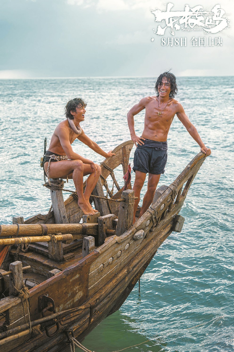 在僅有263人的封閉小島上,健康性感,彪悍狂放的阿赑與阿蕩顯得如此格格不入。為此,影片巧妙地——或許也略顯無(wú)奈地,將兩人設(shè)定為吳老大從海上“撿來(lái)”的孤兒,既規(guī)避了交代人物成長(zhǎng)背景的繁瑣,又通過(guò)兩人可能是“海盜后代”的身份,來(lái)合理化解釋兄弟倆超乎常人的水性、驚人的戰(zhàn)斗力。女主角阿花則是吳老大從人販子手上解救的養(yǎng)女,也可歸入“無(wú)根浮萍”型人物。當(dāng)三位主要角色都因缺乏家庭背景和成長(zhǎng)經(jīng)歷,而與當(dāng)?shù)貪O民群體形成了顯著區(qū)隔,這種處理方式暴露出商業(yè)類型片在改編真實(shí)歷史事件時(shí)常見的困境:拘泥于史實(shí)容易顯得平淡呆板,放飛想象力則會(huì)破壞題材的嚴(yán)肅性。