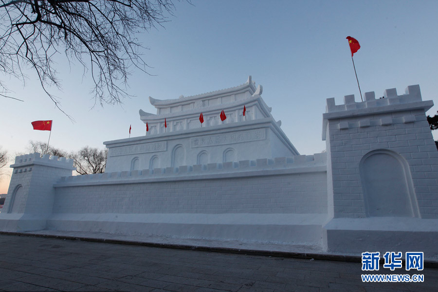 1月5日,長春,第三屆南湖公園雪雕展已全部完工,總造雪量一萬多立方米。共分為三個(gè)區(qū)域即迎賓區(qū)、歡樂區(qū)、復(fù)興區(qū)。