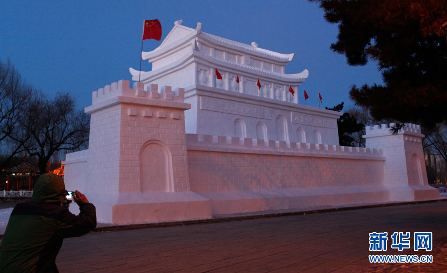 1月5日,長春,第三屆南湖公園雪雕展已全部完工,總造雪量一萬多立方米。共分為三個區(qū)域即迎賓區(qū)、歡樂區(qū)、復(fù)興區(qū)。