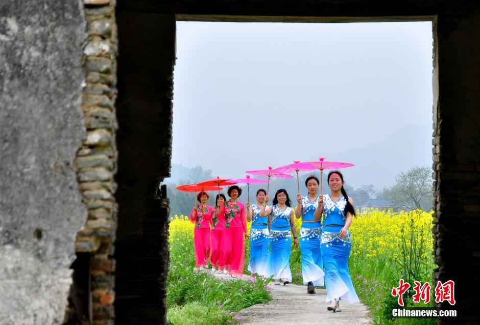 3月20日,江西省德興市??阪?zhèn)杜村婦女在田間花?!白咝恪?。當(dāng)日,江西德興市海口鎮(zhèn)杜村一批家庭婦女以千畝油菜花海為舞臺(tái),展示自己的才藝形象,希望宣傳家鄉(xiāng)的自然生態(tài)與人文歷史,擴(kuò)大旅游知名度和影響力。德興市??阪?zhèn)杜村交通便利,自然風(fēng)光優(yōu)美,村內(nèi)有歷史古跡和名木古樹(shù)。 胡敦煌 攝