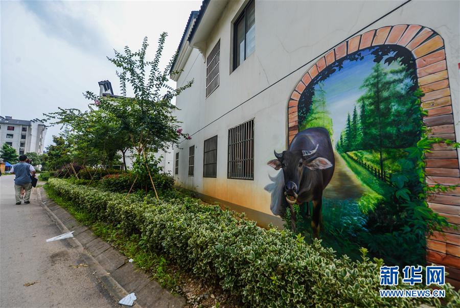 浙江省長興縣北湯村的村舍墻壁上繪有3D畫(7月13日攝)。 7月初,由上海的藝術(shù)家團隊繪制的多幅3D藝術(shù)畫亮相浙江省長興縣林城鎮(zhèn)北湯村的村舍墻上。林城鎮(zhèn)北湯村是浙江省長興縣新農(nóng)村建設示范點,此次繪制3D藝術(shù)畫墻,是該村提升農(nóng)村品味、打造“詩畫北湯”的新舉措。 新華社記者徐昱攝