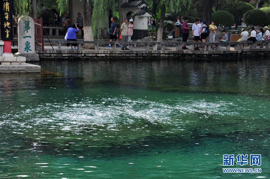 受近期雨水充沛的影響,以趵突泉為代表的濟南市區(qū)名泉紛紛復蘇,基本恢復了正常噴涌的景觀。 新華社記者 徐速繪 攝