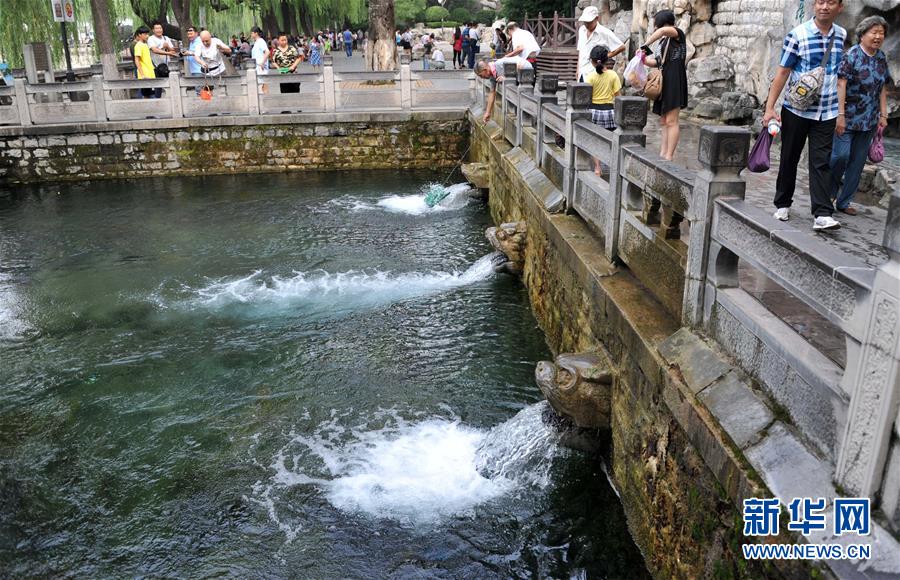 受近期雨水充沛的影響,以趵突泉為代表的濟南市區(qū)名泉紛紛復(fù)蘇,基本恢復(fù)了正常噴涌的景觀。 新華社記者 徐速繪 攝
