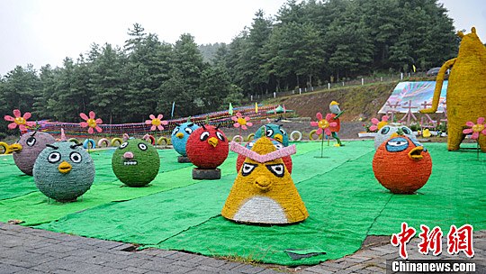 8月31日,赫章縣夜郎國(guó)家森林公園展出的稻草卡通形象。中新社記者 賀俊怡 攝