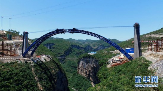 即將合龍的西溪河大橋(5月10日攝)。西溪河大橋位于貴州畢節(jié)地區(qū),是成都至貴陽(yáng)高速鐵路的重難點(diǎn)控制性工程。正在建設(shè)中的成貴鐵路將經(jīng)過(guò)包括紅軍二渡赤水的決策地——云南威信縣在內(nèi)的四川、貴州、云南省境內(nèi)的多個(gè)縣市,革命老區(qū)威信將在不久的將來(lái)結(jié)束沒(méi)有鐵路的歷史,邁入高鐵時(shí)代。 “紅軍不怕遠(yuǎn)征難,萬(wàn)水千山只等閑?!遍L(zhǎng)征譜寫(xiě)了一曲人類(lèi)征服自然的凱歌,峽谷激流、雪山草地、物資匱乏、生命禁區(qū),這一切都不能阻擋紅軍前進(jìn)的步伐。80年過(guò)去,滄海桑田,紅軍長(zhǎng)征走過(guò)的荒郊野嶺,如今樓宇林立,欣欣向榮;徒步翻越的大山、攻克的關(guān)隘、沼澤遍布的草地、泅渡的河流,修起了通暢快捷的公路和大橋……長(zhǎng)征之路發(fā)生了翻天覆地的變化,昔日的艱難險(xiǎn)阻正漸漸變成康莊通途。新華社發(fā)(王會(huì)堂攝) |