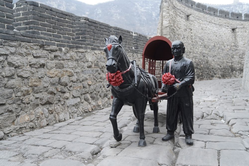 固關(guān)長(zhǎng)城的甕城內(nèi),大約30厘米深的車轍印從城門洞下穿過(guò),深深地鑲嵌在石板路里。游客們徜徉于井陘古道,不禁紛紛感嘆時(shí)光流逝。
