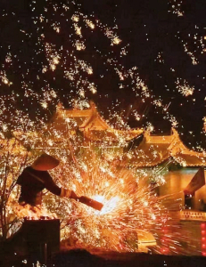 活動(dòng):來(lái)自湖南瀏陽(yáng)的專業(yè)煙花團(tuán)隊(duì)根據(jù)榆次老城環(huán)境特色,打造一場(chǎng)炫酷煙火電音的煙花秀,用零煙花瀑布技術(shù),在安全的前提下為游客帶來(lái)視覺(jué)與美的極致體驗(yàn),將極光天幕+雪景泡泡禮花相結(jié)合,以年輕人的視角與這座百年的歷史古城完美契合,迸發(fā)出新時(shí)代的活力和浪漫。今年榆次老城首次引入大型威亞表演,在電音舞臺(tái)上方演員“飛”奔而來(lái),絢爛的舞臺(tái)燈光承接美輪美奐的威亞敦煌飛天,在45分鐘的飛天表演中,一場(chǎng)傳統(tǒng)美學(xué)和現(xiàn)代流行的結(jié)合悄然展開(kāi),重回千年前的敦煌。同時(shí),老城內(nèi)整體以紅色為主色調(diào),琳瑯滿目的春聯(lián)、門(mén)神、年畫(huà)、福字、橫批、窗花等紅色喜慶元素、布置各種具有著吉祥寓意的大型燈組供游客打卡拍照。