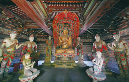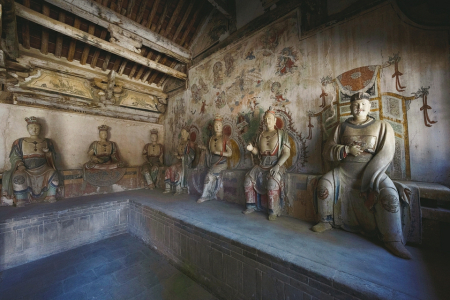 五臺(tái)佛光寺東大殿唐代彩塑刻畫入微,體態(tài)豐滿,展現(xiàn)了唐代彩塑的高超技藝。