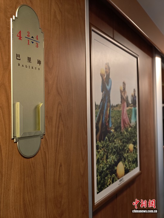 穿行在車廂中間,處處可見新疆的濃濃風情。秉持“一車一風景”的理念,車廂內每個房間均以新疆知名景區(qū)命名,房間門口還張貼著對應景點的美食美景海報,讓游客未至景區(qū),先浸風情。