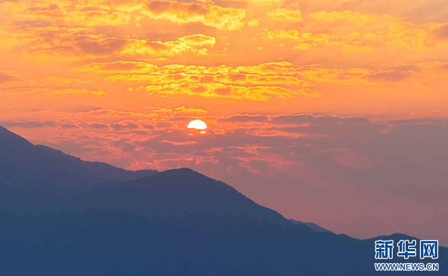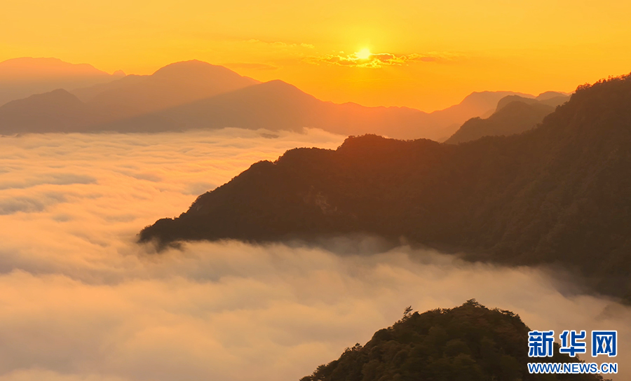 曙光初照,云海翻騰。近日,安徽省池州市石臺縣仙寓山景區(qū)在晨光中展現(xiàn)出一幅壯麗的日出云海畫卷。萬頃云濤在層巒疊嶂間奔涌流動,與朝霞金光交織成景,氣象萬千,蔚為壯觀。(王帆 攝)