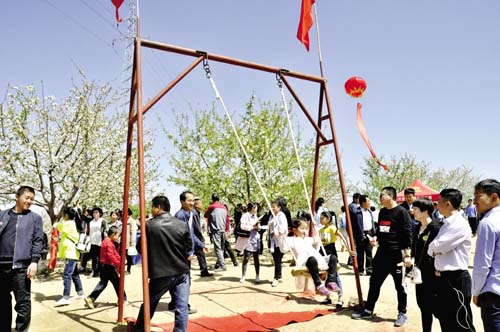 4月23日,為了進(jìn)一步鞏固脫貧成效,提升鄉(xiāng)村旅游品牌效應(yīng),展示當(dāng)?shù)靥厣r(nóng)產(chǎn)品和黃土高原的風(fēng)土人情,保德縣楊家灣鎮(zhèn)段家溝村隆重舉辦了首屆美麗鄉(xiāng)村賞花攝影節(jié)。圖為前來(lái)賞花的游客正在蕩秋千。(劉澤宇 攝) (責(zé)任編輯:李冬梅) |
