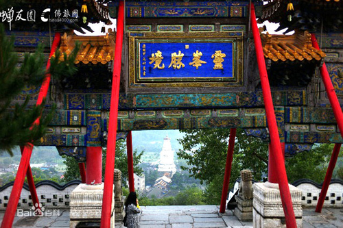 沿一百零八級石階登高,按照佛家的說法,就把人間的一百零八種煩惱踩在腳下了。置身牌樓下,手撫門柱,回身四望,遠(yuǎn)處的山,山上的云,近處的清水河,雄壯多姿的寺廟建筑群,都收入眼中,深感“靈峰勝境”四個字點(diǎn)得妙。這里,是很好的登高覽勝的觀景點(diǎn)。一九四八年春,黨中央機(jī)關(guān)從延安開赴河北省西柏坡,途中路過五臺山,陳毅同志作詩道:“本不游五臺,迂道時日緊,至今有余歡,曾踏菩薩頂。”