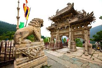 在五臺山的寺廟群中,有一座由家廟改成的佛教寺廟。這座寺廟山門前的石牌樓雕刻精美,很有名氣。它就是著名的龍泉寺,位于東溝北的山嶺下。