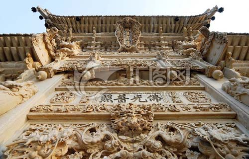 影壁中間鑲嵌有一石雕刻,文殊騎獅居中,人物花卉滿布四周,構(gòu)圖嚴謹,神情逼真。向北登108級臺階即達山門,門前漢白玉石獅一對,勾欄小拱橋一座,石牌坊一座,旗桿高聳于兩側(cè),雕工均佳。其中石牌坊最引人神往,從基石,抱柱,斜戧,額枋,斗拱到瓦頂,脊獸,無一不是精雕細刻,人獸,花卉,流云,山水等分布殿內(nèi),玲瓏剔透,它共有三門六柱,呈“一”字形,整體雄偉壯觀,巧奪天工,據(jù)說是由工匠耗時六年才建成。牌坊上刻有89條蛟龍,鱗爪俱現(xiàn),神態(tài)逼真;人物表情栩栩如生。游人觀后,無不交口稱贊,印象深刻。寺內(nèi)三座院落橫向排列,相互串通,又各有山門,自成風(fēng)格。東院為殿院,依地勢分前后兩進,除山門外,中線上還有佛殿兩座,圍枝廂房配殿,塑像俱存,彩繪房和獻亭,曲廊環(huán)繞,雙塔高聳,其中普濟禪師塔雕尤為精致。距龍泉寺西北里許的山坡,有一座楊業(yè)的瘞骨塔,六角、三級,高約10米。傳說楊業(yè)死后,五郎將其尸骨葬此,并建塔紀念。宋太宗后來追封楊業(yè)為楊令公,故后人稱此塔為令公塔。