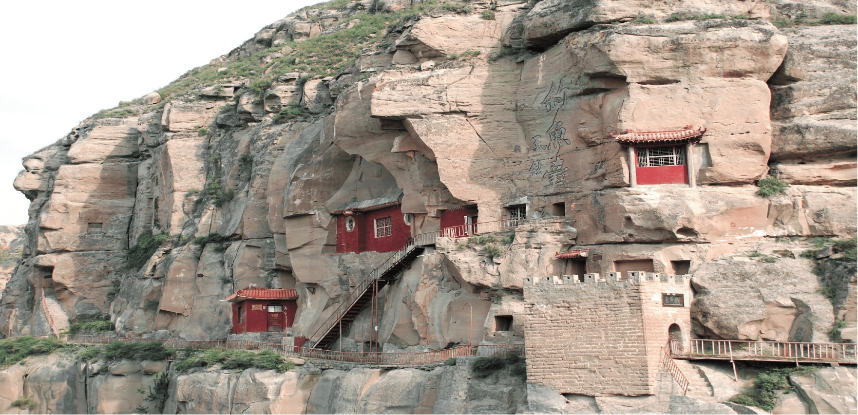故城石窟位于保德縣楊家灣鎮(zhèn)故城村西1500米、黃河?xùn)|岸石崖上。清順治二年(1645),由陳奇瑜構(gòu)筑,歷時三年建成,建有呂仙祠等建筑。故城石窟坐東向西,占地面積約600平方米。向南石砌的古堡式門洞,門洞上方匾書“釣魚臺”,頂部砌有女兒墻垛口。山壁上有大小不等的10孔人工開鑿的石窟。