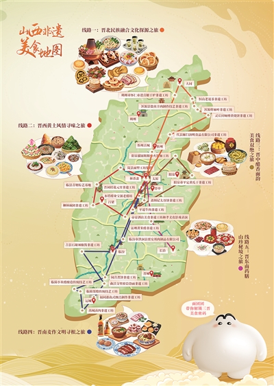 這5條非遺美食線路以“晉商文化”“面食王國”“藥膳康養(yǎng)”等為主題,以3日游或4日游為主,包括晉北民族融合文化探源之旅、晉西黃土風(fēng)情尋味之旅、晉中醋香面韻美食雙絕之旅、晉南麥作文明尋根之旅、晉東南藥膳山珍秘境之旅,覆蓋醋釀、面藝等30余項(xiàng)省級以上非遺美食項(xiàng)目,串聯(lián)起太原、大同、長治等全省11市30多個(gè)非遺工坊以及眾多歷史街區(qū)、自然景觀,形成“美食+非遺+景區(qū)”的立體化文旅線路。